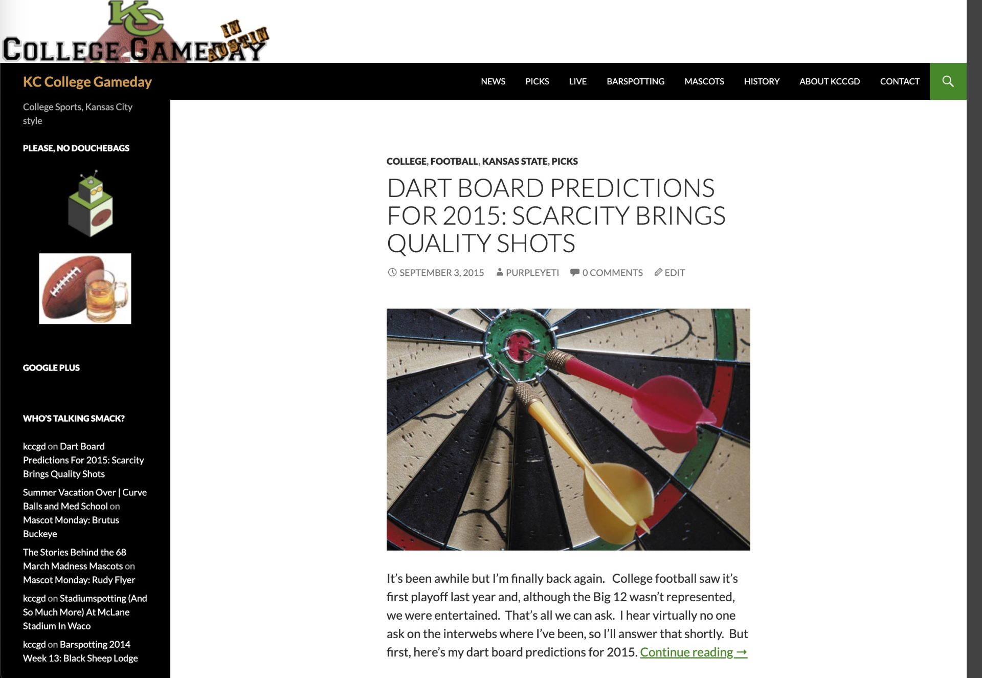 Back in Kansas City, I was riding so high off of my college days and love for college football that I spun up a blog to cover it. What did I cover? Kansas State football, local KC sports bars, road trips, predictions, mascot histories, and a bunch more. There was a dream about getting sponsored to do bar reviews but it never happened. Still, it catalogued most of my 20s so it’s great to revisit.